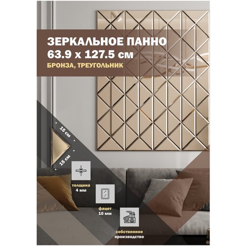 Зеркальная плитка ДСТ, панно на стену 63.9х127.5 см, цвет бронза, форма треугольник 15х15 см.