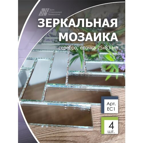Зеркальная мозаика на сетке елочка 260х292 мм, прямоугольник серебро, размер чипа 25х83 мм. (2 листа)