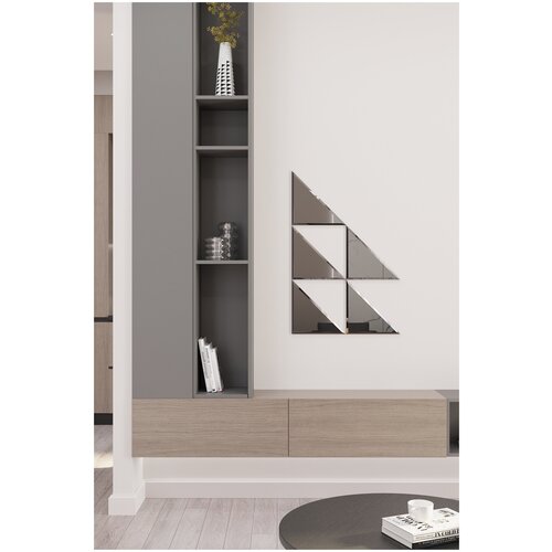 Зеркальная плитка ДСТ, панно на стену, треугольник графит матовый, 8 шт. 15х15 см.