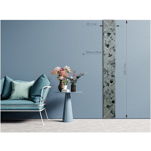 Зеркальная плитка ДСТ, панно на стену Античность 28.2х226.2 см, квадрат 20х20 см, цвет серебро.