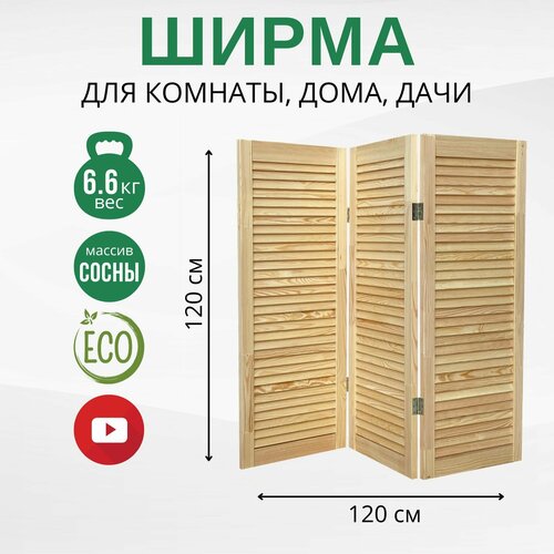 Ширма для комнаты перегородка для зонирования деревянная складная жалюзийная напольная, ДваДома 100х120 см, 3-х секционная, DD0096