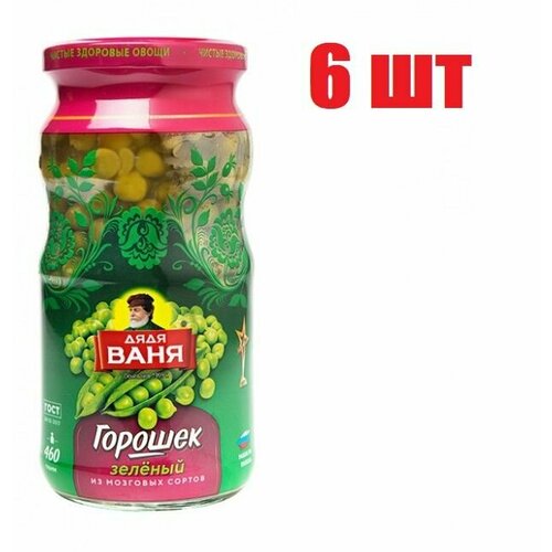 Горошек зеленый консервированный "Дядя Ваня" из мозговых сортов 460 г 6 шт