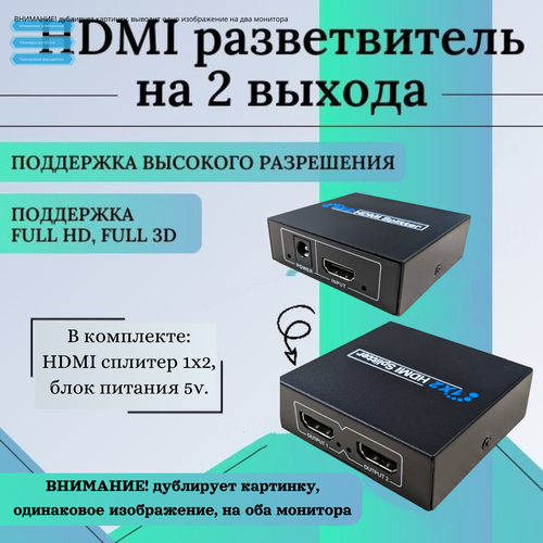 HDMI разветвитель с одного на 2 экрана на 2 монитора 1 вход HDMI - 2 выхода HDMI