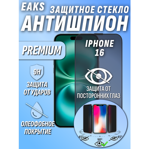 Защитное стекло iPhone 16 антишпион закаленное броне покрытие