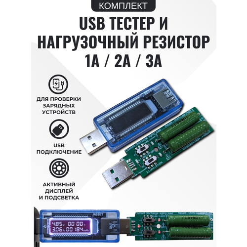 Комплект USB Тестер (вольтметр амперметр) + Нагрузочный резистор 1A / 2A / 3A