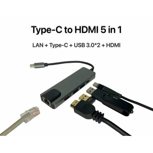 Macbook Type-C HUB 5 в 1 1000Mb/s 2 USB 3.0 HDMI ethernet RJ45