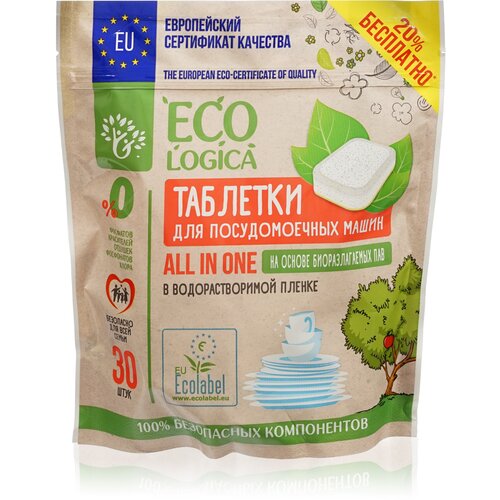Таблетки для посудомоечных машин Ecologica, биоразлагаемые, 30 шт.