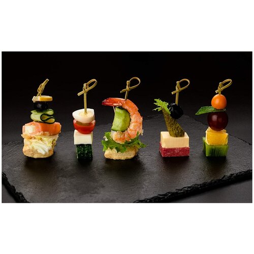 Шпажки бамбуковые "Ecosina" Чёрный Жемчуг 12 см 100 для канапе и бургеров