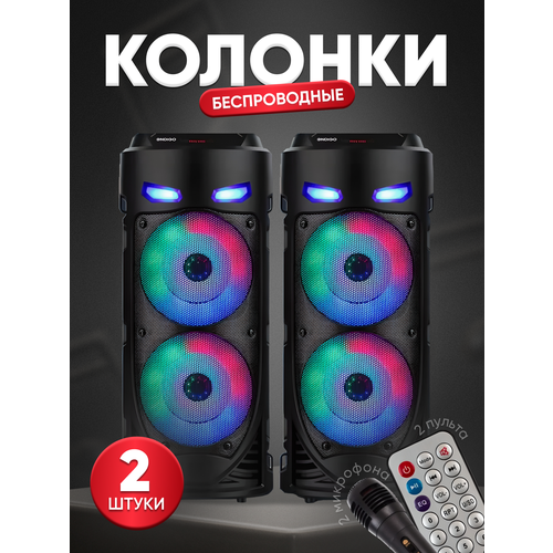 Комплект из двух колонок ZQS 4239 - Колонка с микрофоном / Портативная колонка с Bluetooth / Динамик большой / Светомузыка и караоке
