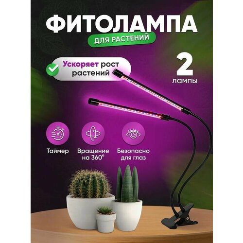 Фитолампа 2 гибких лампы - Инфракрасная лампа для растений / Светильник для рассады / для проращивания