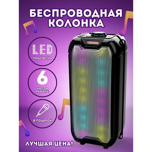 Большая беспроводная колонка 8225 с подсветкой - Колонка портативная / Беспроводная колонка Bluetooth с FM-радио Черный цвет