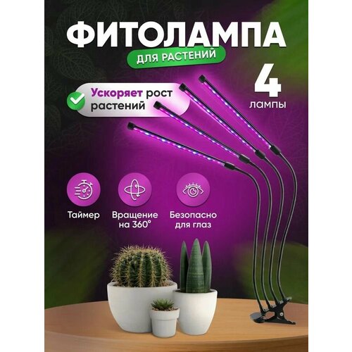 Фитолампа 4 гибких лампы - Инфракрасная лампа для растений / Светильник для рассады / для проращивания