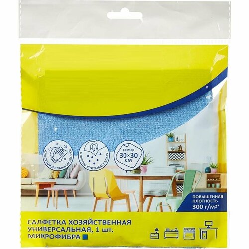 Салфетка хозяйственная из микрофибры универсальная, 30х30см, повышенная плотность 300 г/м², 10 штук в наборе, цвет: