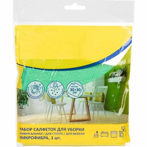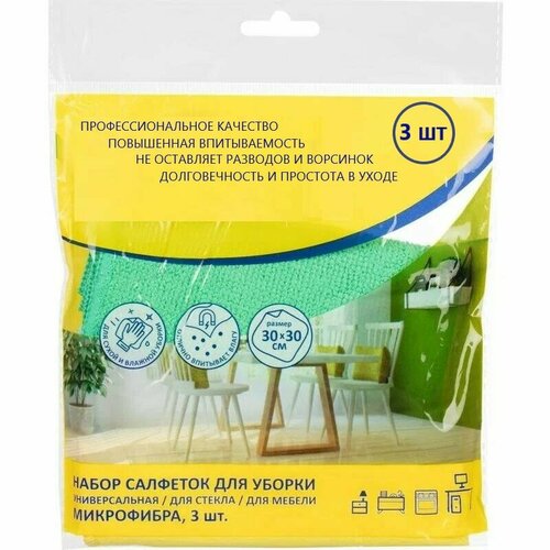 Салфетки хозяйственные из микрофибры 30х30см, 3 штуки в наборе (для мебели, для стекол и зеркал, универсальная)