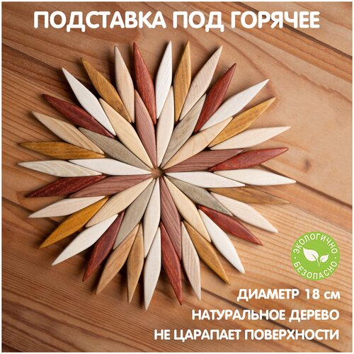 Подставка под горячее деревянная из 5 пород дерева, подставка под кружку для горячего, тарелок, 18 см