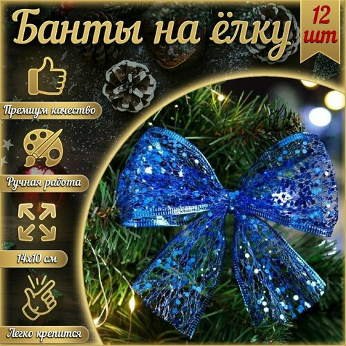 Бант на ёлку сетка с пайетками большой 14*10 см 12 шт.