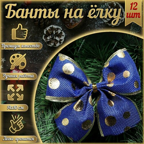 Бант на ёлку мешковина горох большой 14*10 см 12 шт. синий