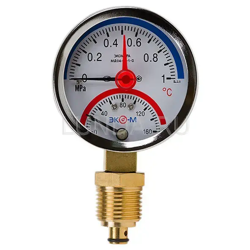 Термоманометр экомера МД04-80мм 0-1МПа 0-160С G1/4 х G1/2" МД04-80-G-1МПа-160-РИ