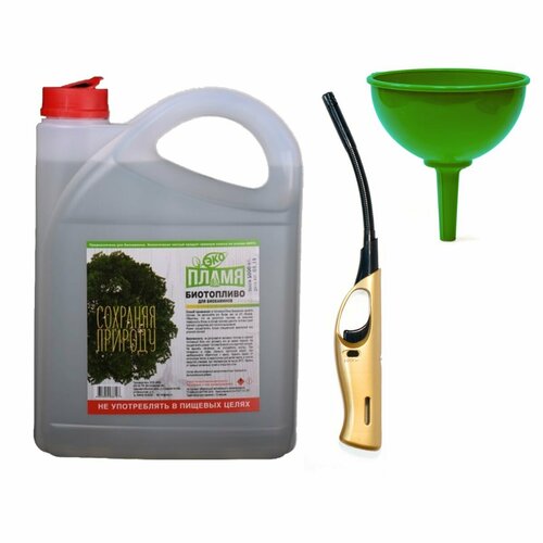 Стартовый набор для биокаминов ЭКО Пламя, в комплекте биотопливо 5 л, зажигалка и воронка