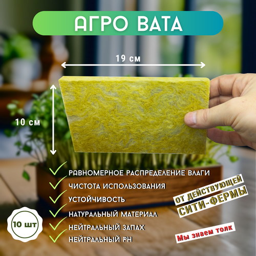 Агровата для выращивания микрозелени, минеральная вата для растений, минвата, каменная вата, минеральный грунт, коврик 10x17x1 cм - 10 шт