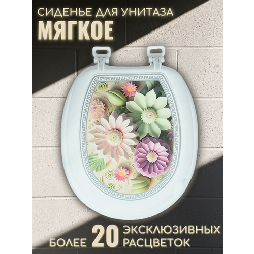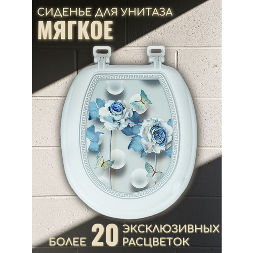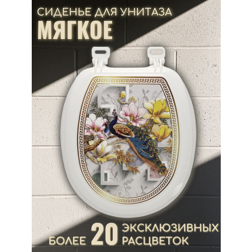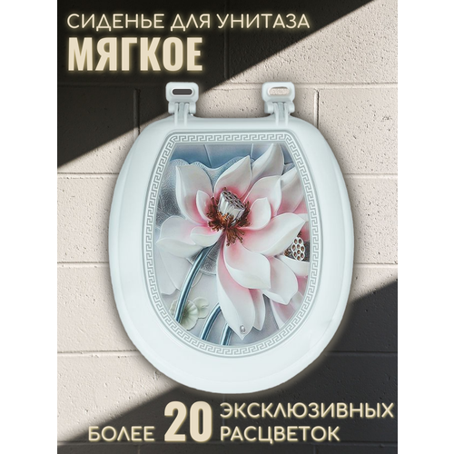 Сиденье для унитаза белое мягкое с крышкой гибрид м03