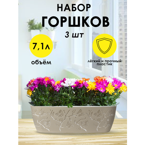 Горшок для цветов DDStyle, бежевый, 3,75 л, 3 шт