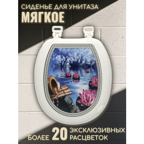 Сиденье для унитаза белое мягкое с крышкой гибрид м010