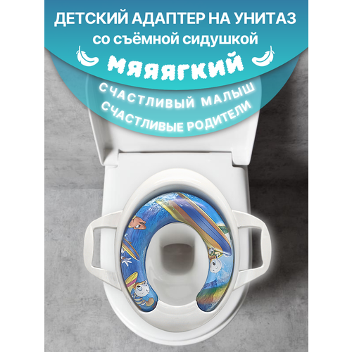 Накладка мягкая детская на унитаз со съемным сиденьем, адаптер с ручками море