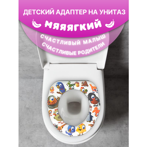 Адаптер детский для унитаза, сиденье для унитаза детское мягкое, птицы