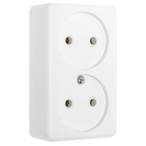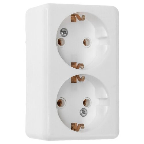 Розетка "Элект" РА 16-009, 16 А, 250 В, двухместная, открытая, с монтажной панелью, белая