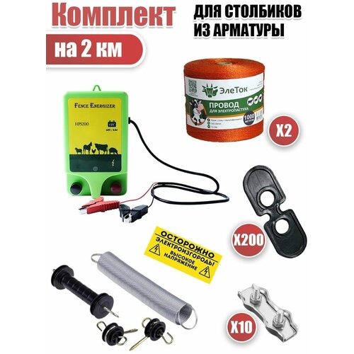 Электропастух комплект на 2 км, для арматуры, с веревкой