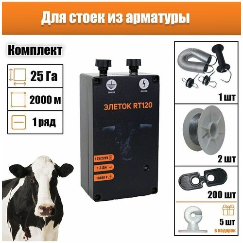 Электропастух для КРС комплект на 2000 м, по арматуре Элеток