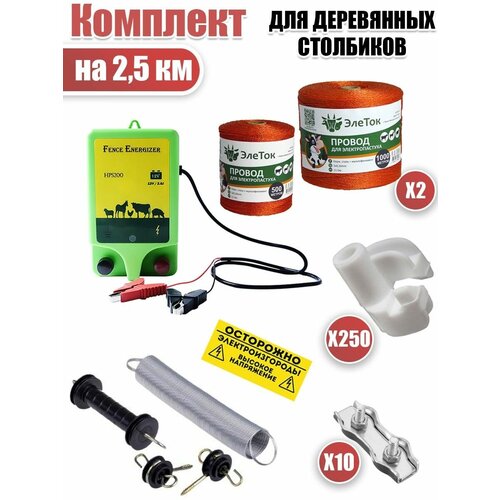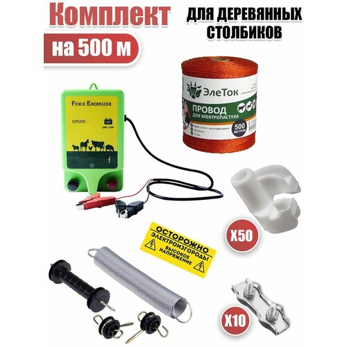 Электропастух комплект на 2 км, для дерева, с проволокой