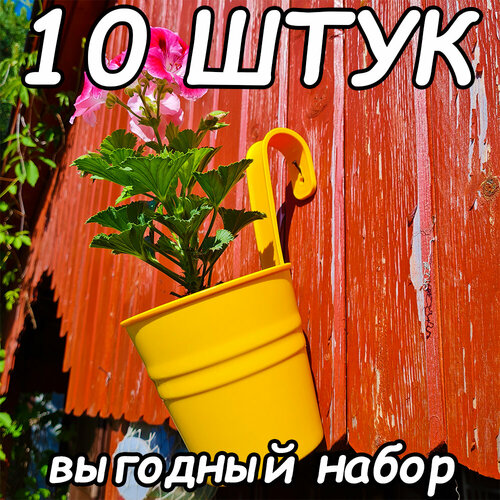 Выгодный набор 10 штук. Настенное ведёрко-кашпо, с креплением под трубу или гвоздик. Цвет: Жёлтый.