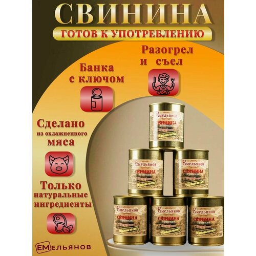 Свинина тушеная Емельянов Высший сорт ГОСТ 32125 -8 шт 338 г.