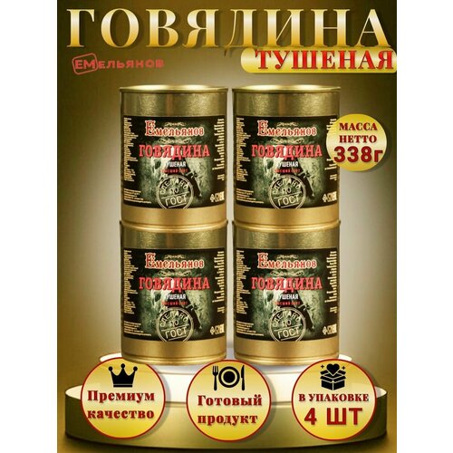 Говядина тушеная Емельянов Высший сорт ГОСТ 32125 -4 шт 338 г.