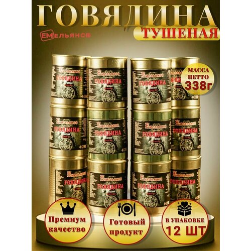 Говядина тушеная Емельянов Высший сорт ГОСТ 32125 -12 шт 338 г.