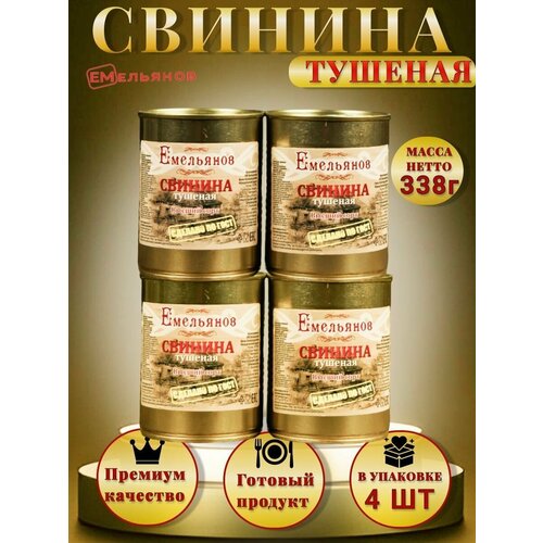 Свинина тушеная Емельянов Высший сорт ГОСТ 32125 -4 шт 338 г.