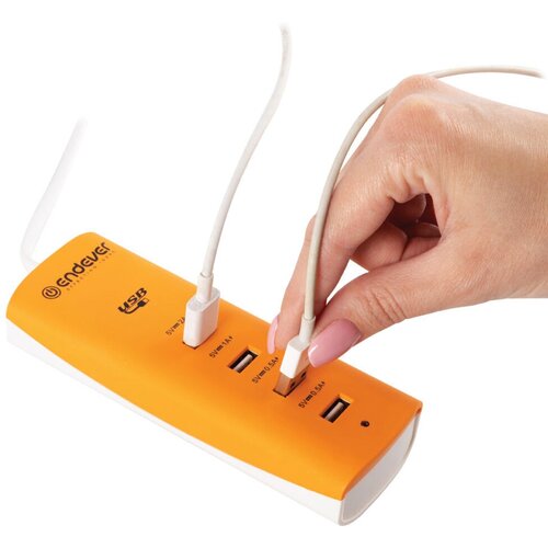 Сетевое зарядное устройство Endever MasterCharger-200, 4xUSB, 5 A, orange