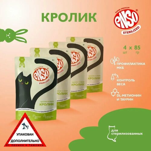 ENSO STERILIZED корм для взрослых стерилизованных кошек, кролик, пауч 85г 4 шт