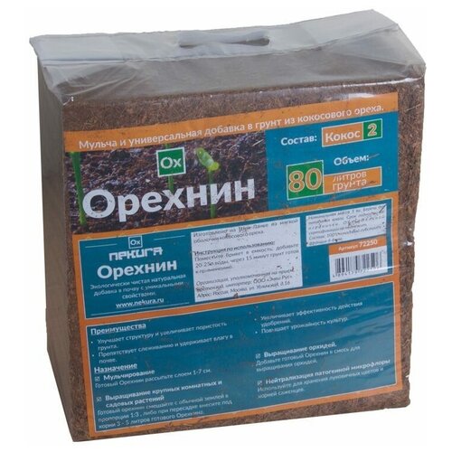 Кокосовый субстрат NEKURA Орехнин-2 брикет, 80 л, 5 кг