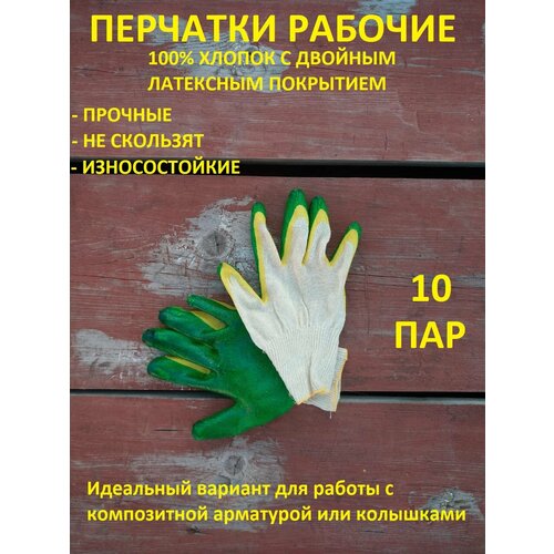 Перчатки хозяйственные с двойным латексным покрытием 10 шт