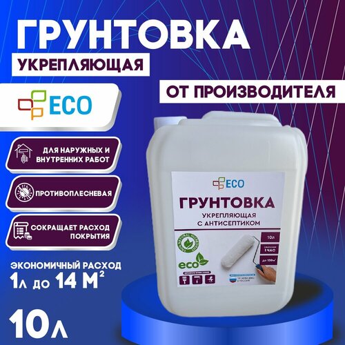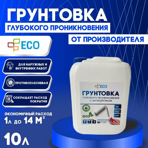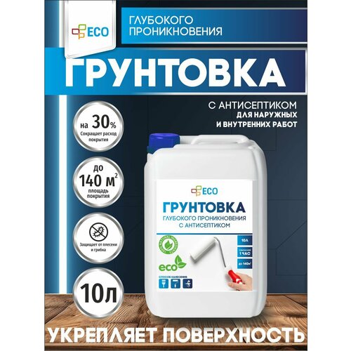 Грунтовка глубокого проникновения ECO с антисептиком для стен и потолков, 10 л