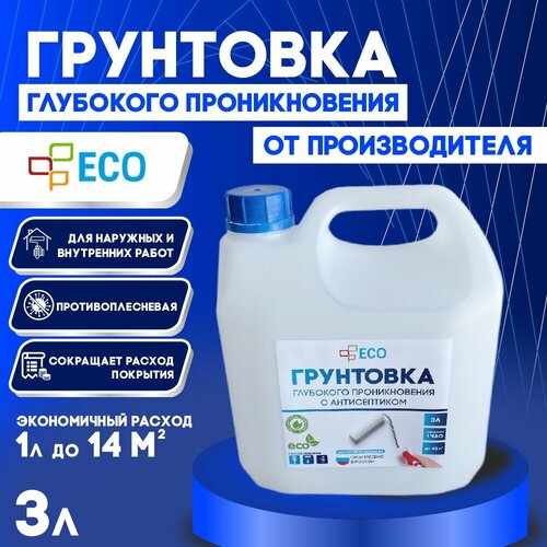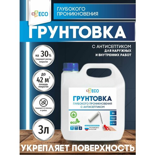 Грунтовка глубокого проникновения ECO с антисептиком для стен и потолков, 3 л