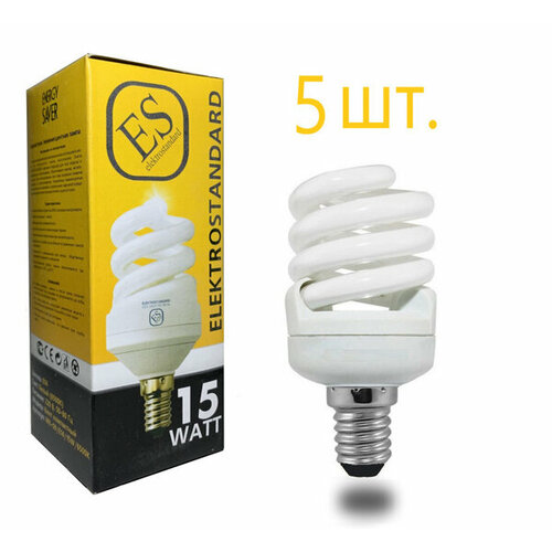 Лампа энергосберегающая люминесцентная ES, E14 15W 2700K винт компактный, 6шт.