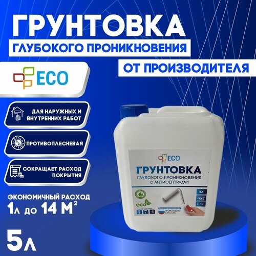 Грунтовка глубокого проникновения ECO с антисептиком для стен и потолков, 5 л
