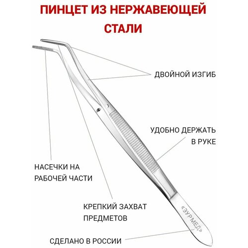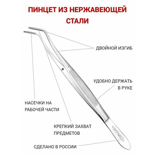 Пинцет изогнутый из нержавеющей стали