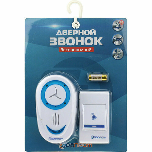 Звонок дистанционный ЭП-8853, 32 мелодии, 2ААА, сине-белый