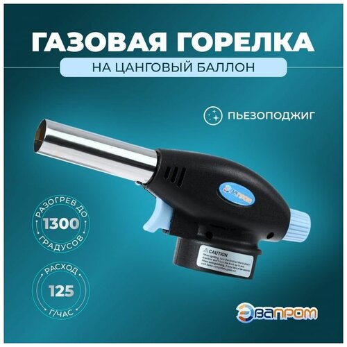 Газовая горелка с пьезоподжигом, с внутренним керамическим соплом, на цанговый газовый баллон, универсальная, туристическая. ЭП-900. Эвапром