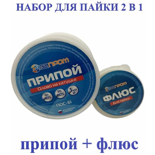 Набор для пайки 2 в 1 (Припой ПОС-61, Спирто-канифольный флюс) Эвапром
